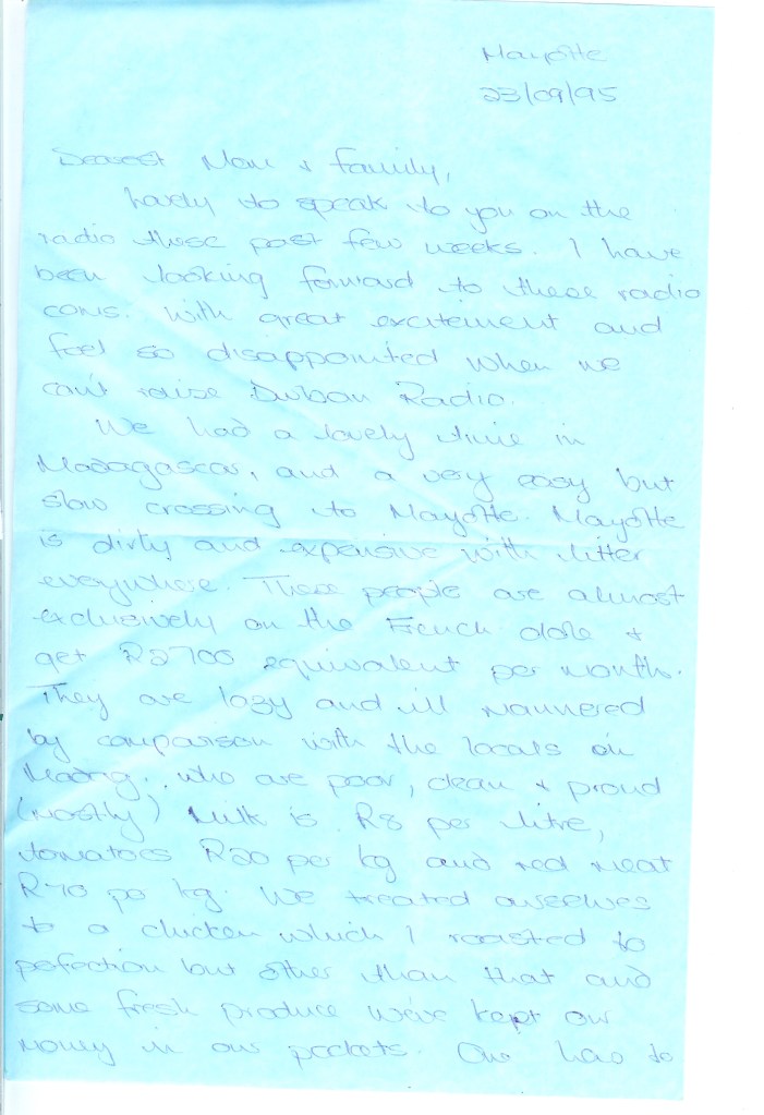 val’s letter from Mayotte 23rd Sept ’95 000 Published 29 June 2013 at 1392 × 2032 in East Coast of Africa
